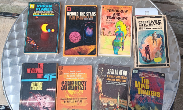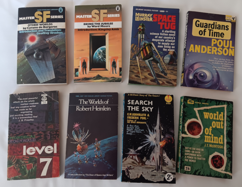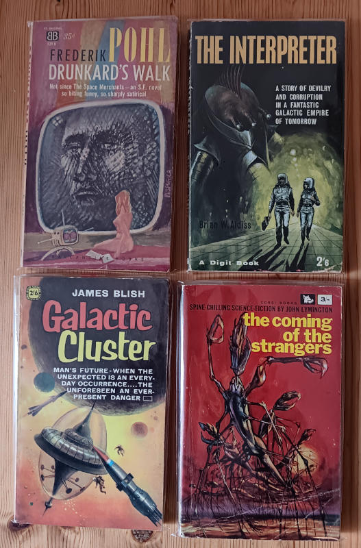 In February I had one of those thrilling moments of going into a charity shop and finding some wonderful vintage sci-fi books.  You hope every time you pop into one that you’ll find a gem, but mostly its just disappointment. But very occasionally you come up trumps and I did just that on a rainy Saturday in Southampton.   The guy behind the counter said “Someone dropped a box off yesterday and inside was a load of old stuff.”  By ‘old stuff’ he meant vintage gems.  I bought six and then, that night, lay awake cursing myself for not grabbing more so went back when I could a few days later.