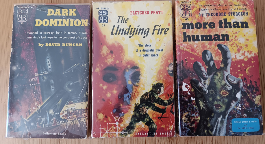 While the majority of books in my collection are from the 60s/70s, I do love fifties sci-fi books but its very hard to find them in reasonable, let alone good condition these days. I did manage to get three early Ballentine’s this month from a couple of different sources.
