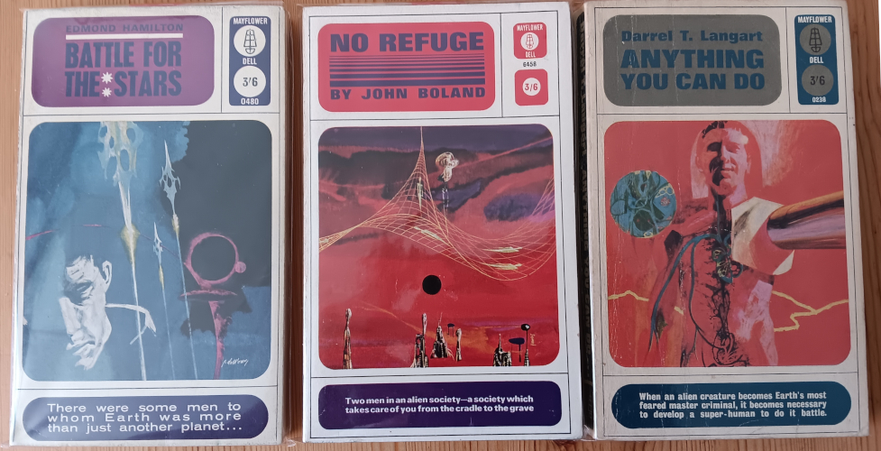 And finally, I’m increasingly on the look out for Mayflower Dell Sci-Fi.  Some of there cover are great!  Here’s three I got this month.