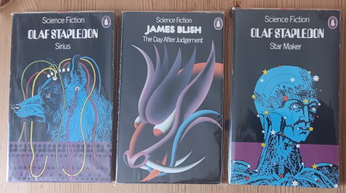 Many of the wonderful books I got from Bob at a very reasonable price are on this month’s finds page.   As is a 1966 Penguin edition of The Kraken Awakes (cover by John Byrne) that I’ve been after for ages (I’ve added a scan of it to ISFDB where it was missing) and a bit of a battered copy of a compact edition of Judith Merril’s Shadow of the Hearth.